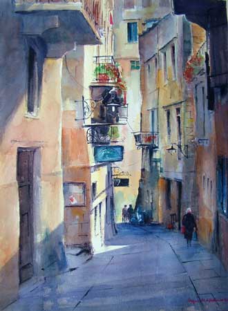 Old Houses, Palma, Majorca, Watercolour