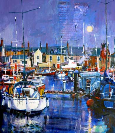 Print of Morning Moon, Arbroath, Mixed Media