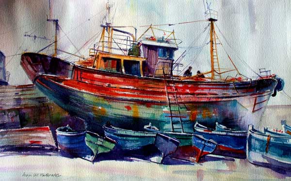 Hebridean Boats, Watercolour