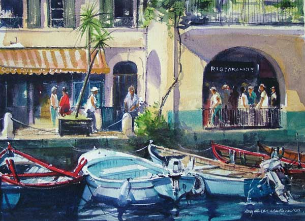 Limone Boats, Lake Garda, Watercolour