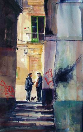 Talking Politics, Malaga, Spain, Watercolour